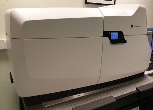 The Zeiss CD7 is a fully automated microscope providing confocal and widefield high content imaging in four channels from 4 to 50x magnification, including water-immersion objectives. It has capability to image single coverslip up to 1536-well plates. The additional Airyscan capability allows super-resolution imaging (<100nm resolution). Capabilities include full environmental control, on the fly single cell and population analysis and find/re-find, allowing low magnification scanning to find cells of interest and automated high magnification scan on objects of interest.